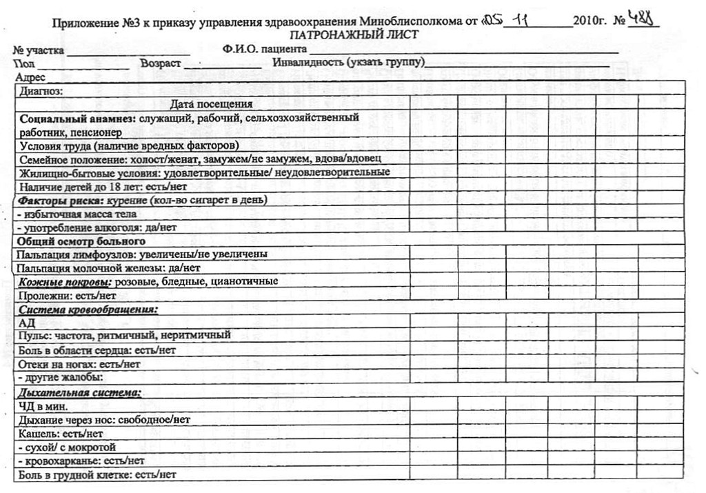 1. Приказ управления здравоохранения Миноблисполкома от 05.11.2010 №488 «О совершенствовании работы участковой терапевтической службы на дому».