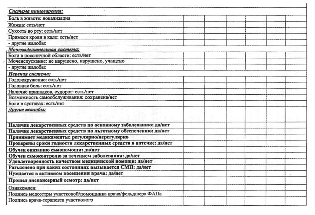 С целью повышения качества лечебной и профилактической работы, проводимой с пациентами, страдающими хроническими заболеваниями и требующими контроля за динамикой состояния и эффективности проводимого лечения, медицинской сестрой участковой (помощником врача-терапевта участкового, фельдшером ФАПа) осуществляется патронаж.
