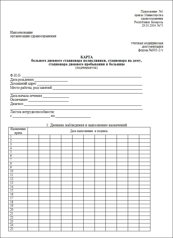 1. Дневной стационар (стационар дневного пребывания, отделение дневного пребывания).